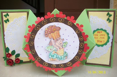 This is the inside of the card. The pedestal pop up has been inspired from Dr. Sonia's blog. The link to her tutorial is